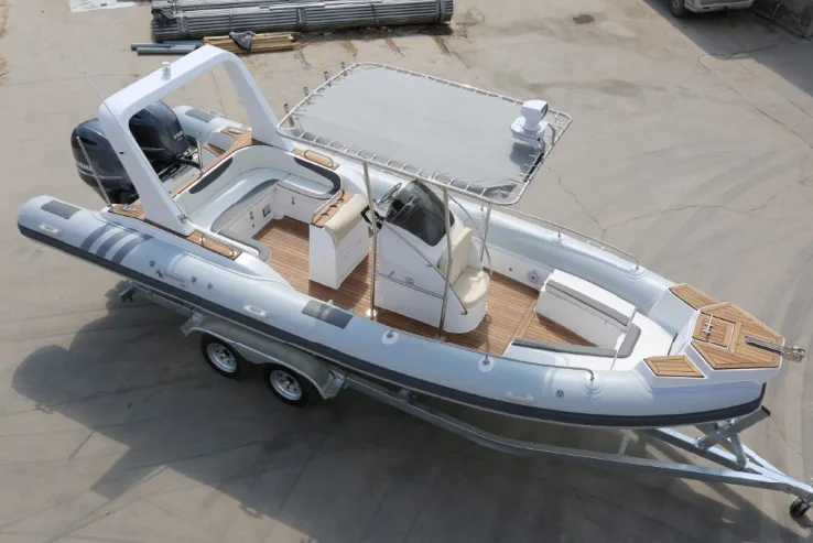 Qingdao Seastar Sport Equipment Company Awal menghasilkan panjang bot gentian kaca. Lambung gentian kaca pepejal ini lebih berat daripada badan aluminium, jadi bot tulang rusuk gentian dapat menjamin bot anda dengan keupayaan beralih yang lebih tepat, dan keupayaan untuk menavigasi dalam keadaan laut yang lebih melampau.