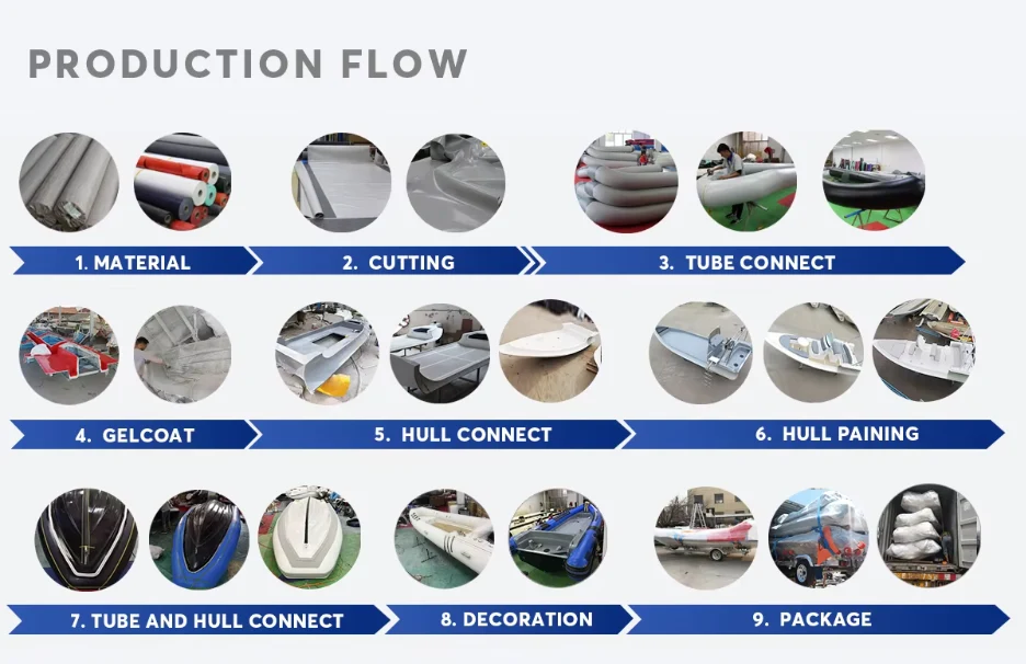 1. Semua pengganti bot kembung separa gentian kaca kami untuk jet ski diperbuat daripada badan gentian kaca berkualiti tinggi dan tiub hypalon gred marin.